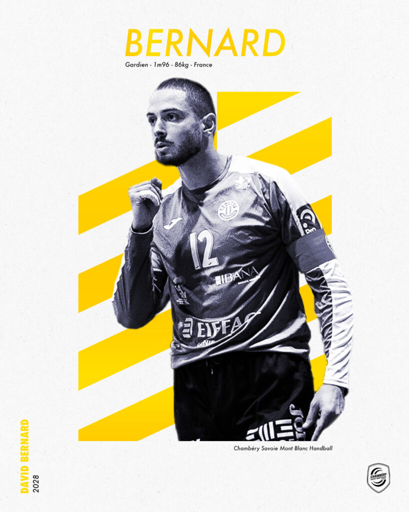 Le Chambéry Savoie Mont Blanc Handball est heureux d’annoncer l’arrivée de David Bernard, gardien de but en provenance de l’US Ivry Handball, avec qui il s’engage jusqu’en 2028.