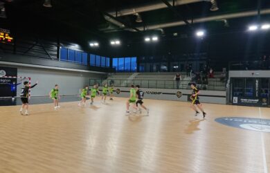 Pour cette reprise de début d’année 2026, la Team Chambé reçoit sur ses terres l’équipe de AC Seyssinet Handball. En ce début de première période, le jeu tourne très vite à l’avantage des Jaunes & Noir, qui vont vite se détacher au score. Les visiteurs se heurtent à une défense Chambérienne bien présente. Entre pertes de balles et interceptions, la Team Chambé creuse l’écart grâce notamment à quelques contres attaques efficaces.