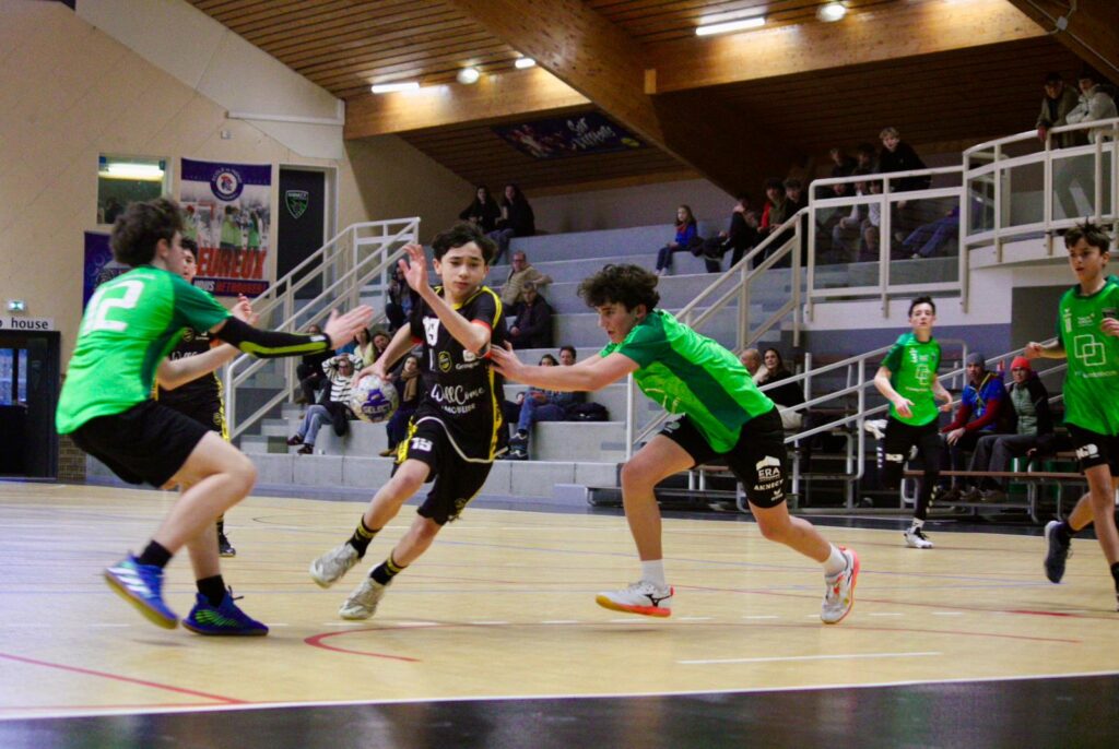 Les garçons jouent collectif en attaque et assurent une défense très efficace, faisant ainsi douter leurs adversaires du jour qui butent sur notre gardien en feu. Ils rentrent ainsi aux vestiaires avec 5 buts d’avance :15-20.